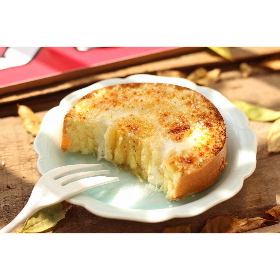 这个吃法好有趣!脆脆的一层焦糖片要戳碎吃。然后我奶油的部分砂糖洒得少,没烤出焦糖色来,后面再这样玩了几次证明砂糖真的不要...