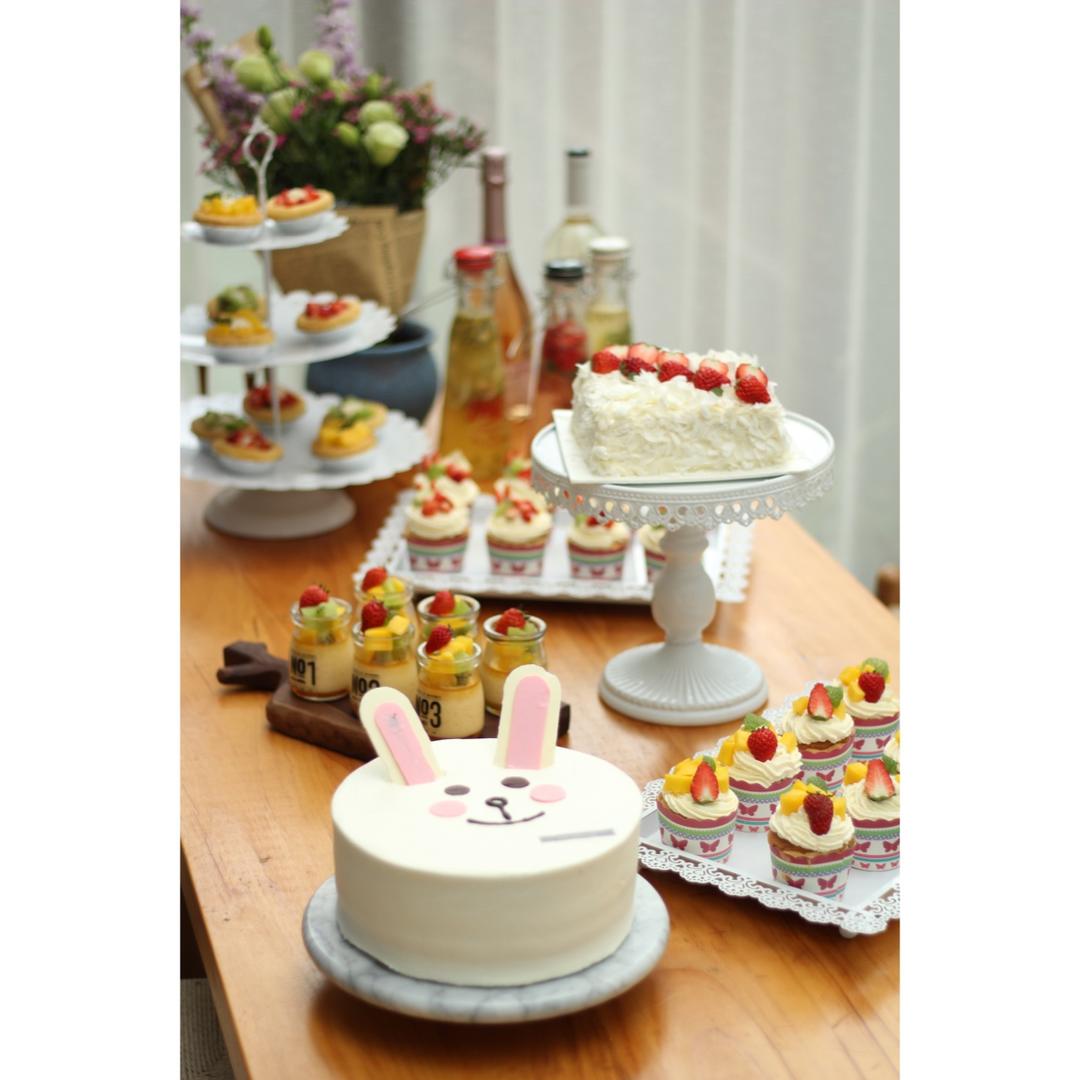 朋友生日,装饰的蛋糕,摆了解决像一桌甜品台的样子了。小蛋糕是去现场做哒,大蛋糕都是买来的,我装饰了下而已。 #早餐•20...