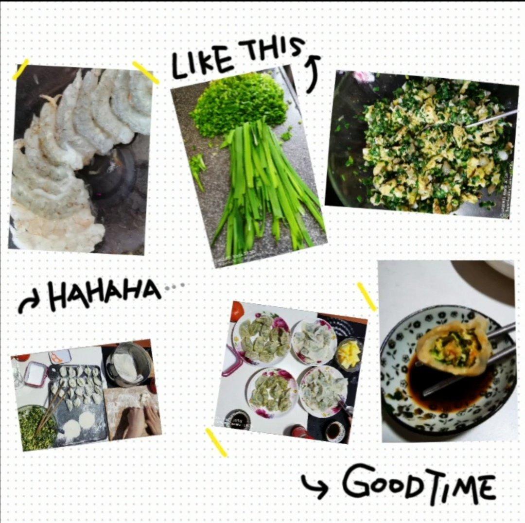 然后为了一把韭菜搭进去大虾和柴鸡蛋的三鲜馅儿饺子出锅了。好吃好吃(「・ω・)「