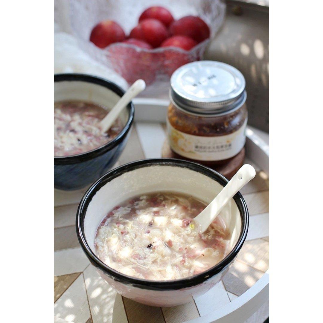 天热,每天吹空调,煮碗酒酿丸子袪寒气…其实就是突然想吃!挖一勺有淡淡桂花香的黛绮莉丰水梨果茶酱进去拌匀,美味...
