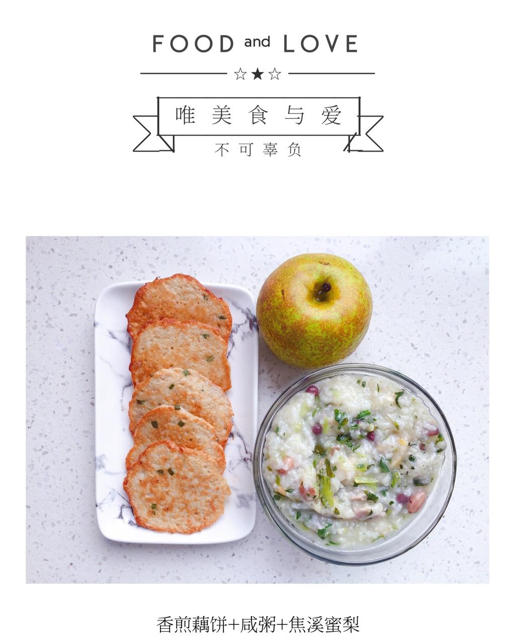 早餐:香煎藕饼+咸粥+焦溪蜜梨