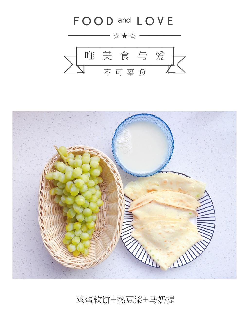 早餐:鸡蛋软饼+热豆浆+马奶提