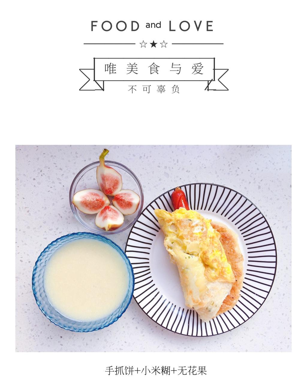 早餐:手抓饼+小米糊+无花果