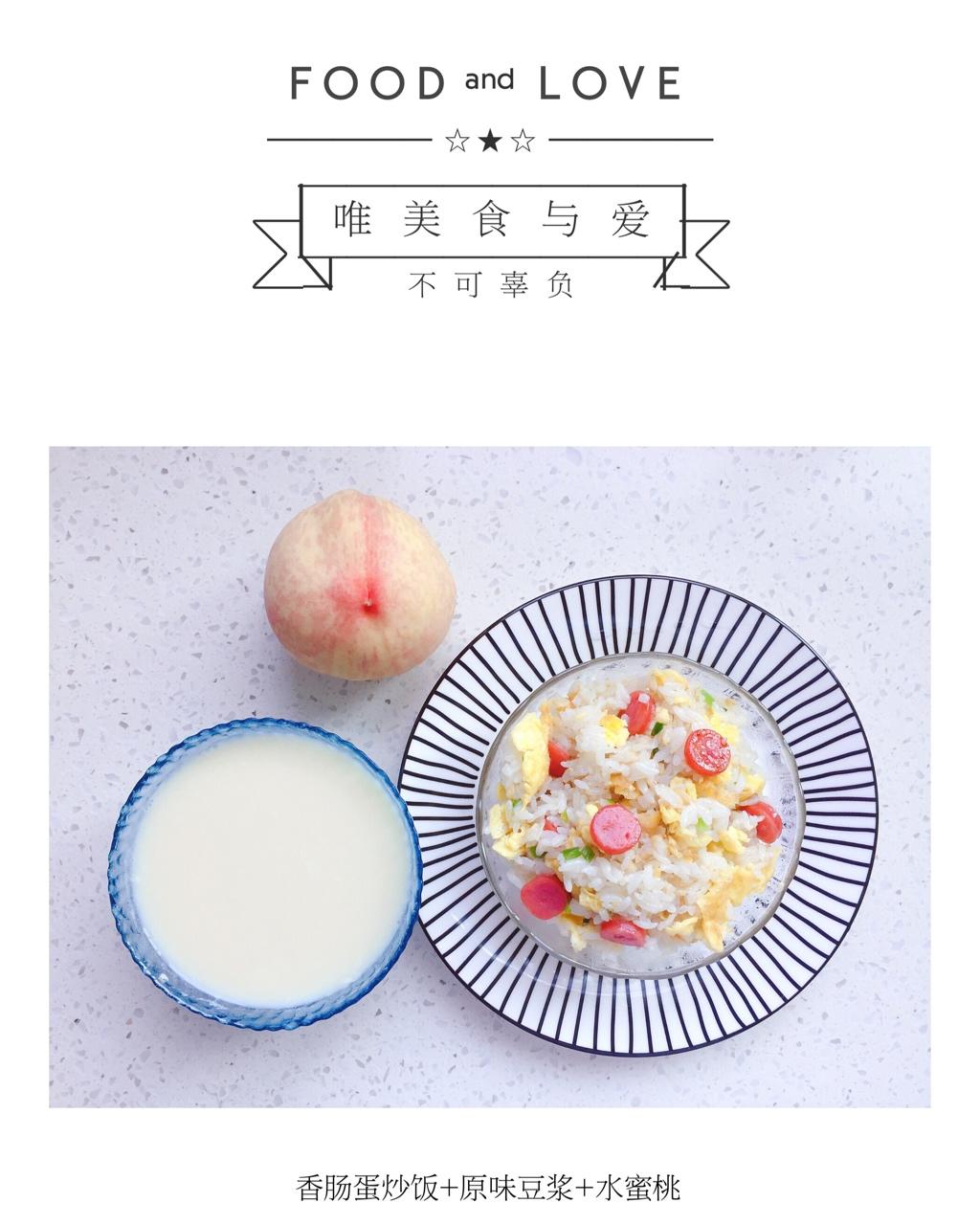 早餐:香肠蛋炒饭+原味豆浆+水蜜桃