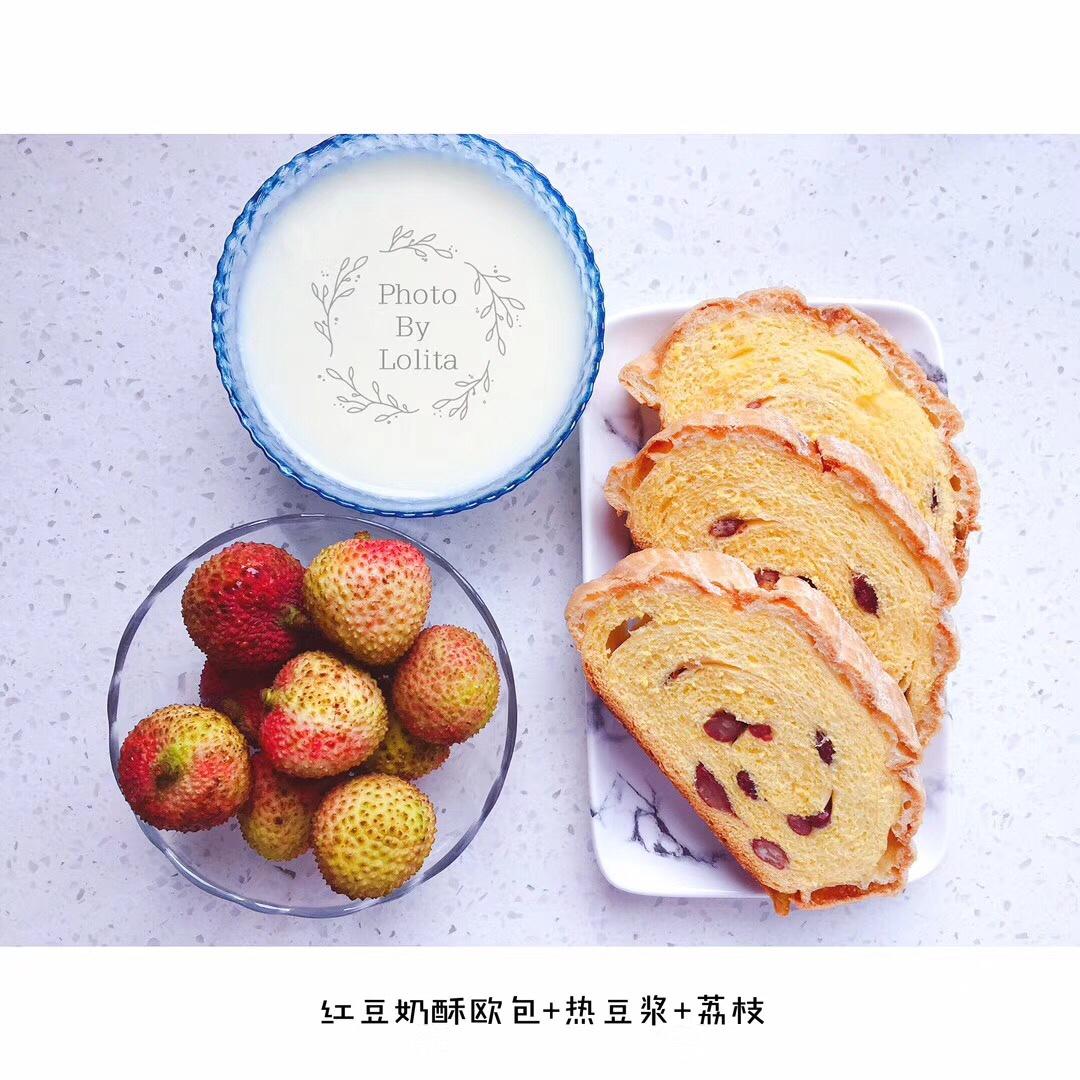 早餐:红豆奶酥欧包+热豆浆+荔枝