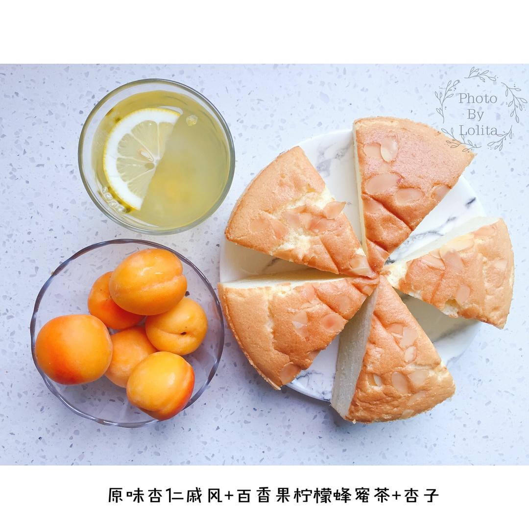 早餐:原味杏仁戚风+百香果柠檬蜂蜜茶+杏子