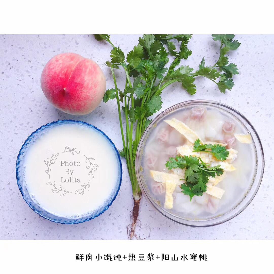 早餐:鲜肉小馄饨+热豆浆+阳山水蜜桃