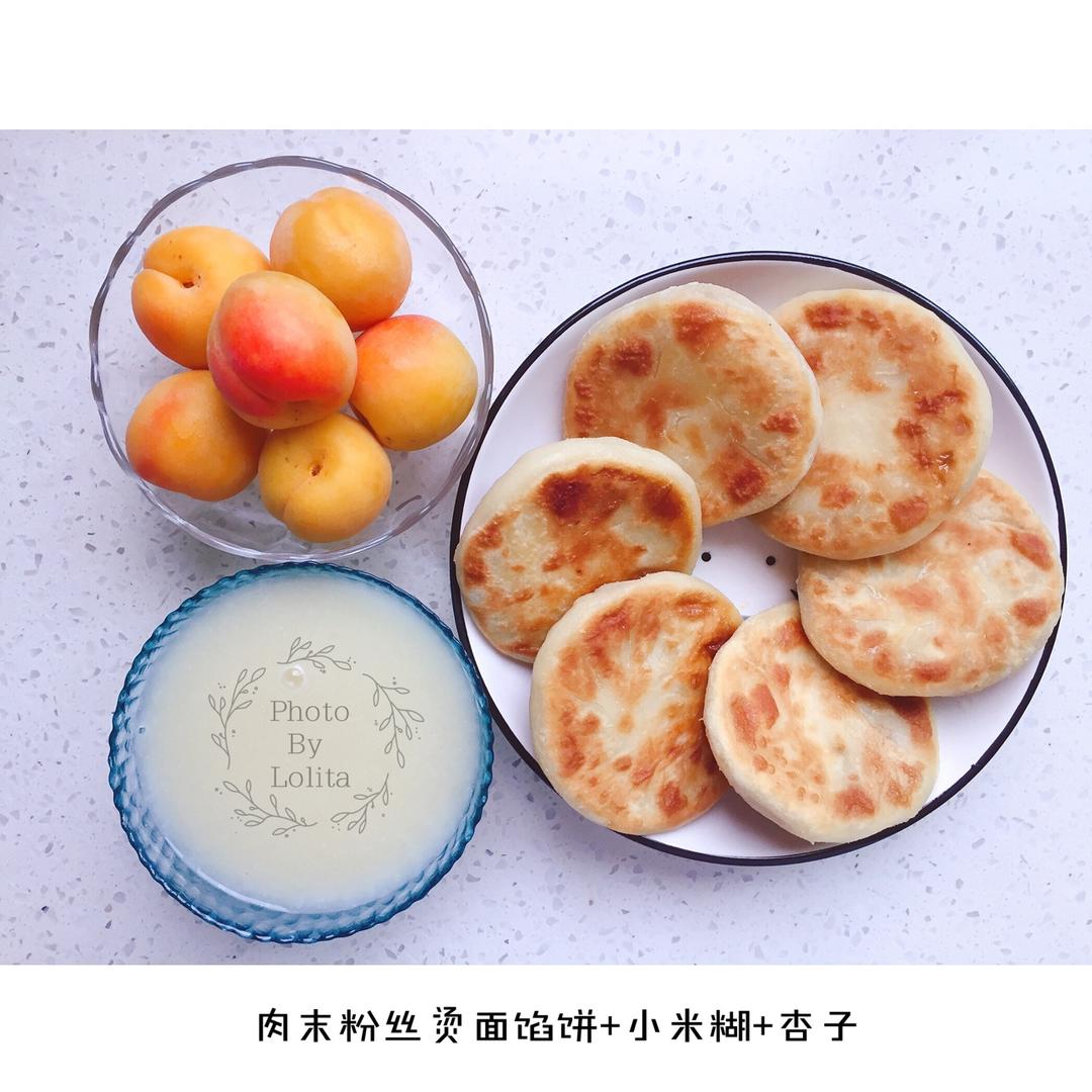 早餐:肉末粉丝烫面馅饼+小米糊+杏子