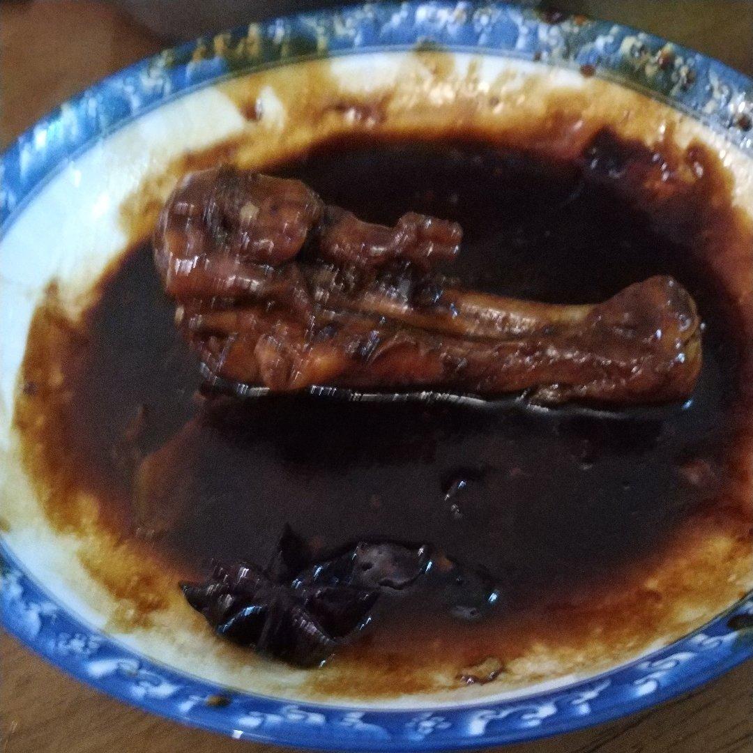 红烧鸡腿。好吃。不过我的是冰冻鸡腿,所以焯水了。然后没有放料酒腌,盐也没放。生抽老抽足够咸了。谢谢分享哈