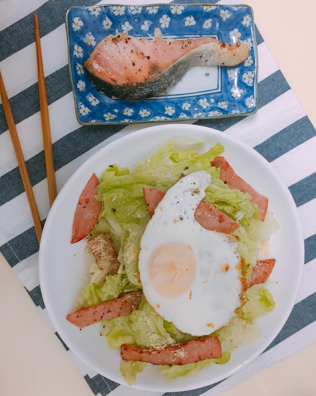 雞蛋,蝦,粟米,雜菜...省錢健康,dressing 另外用小瓶子裝開,吃的時候再淋上去...省錢...