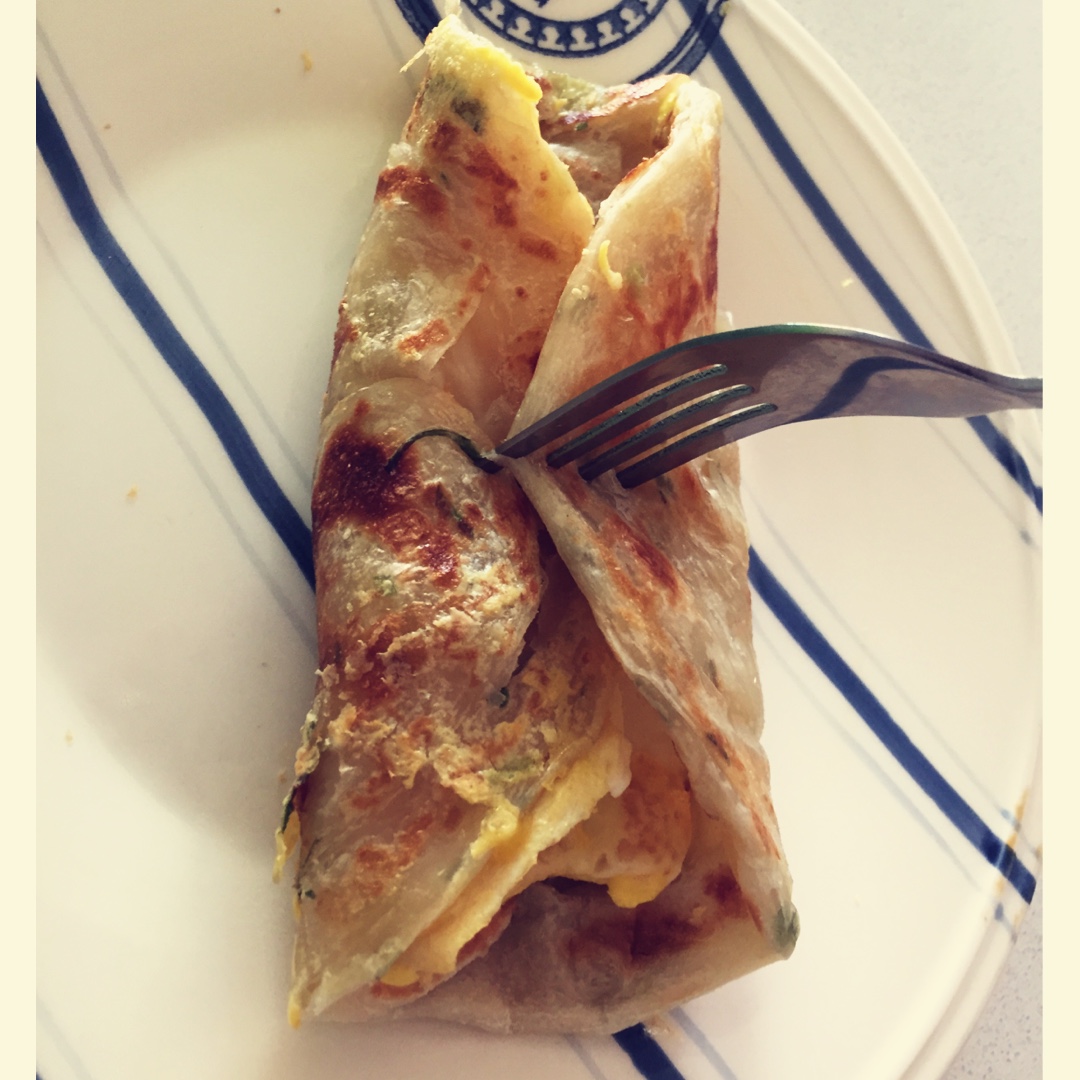 手抓饼 加鸡蛋加肉松 番茄酱 谢谢阿姨 😭 好怀念😭