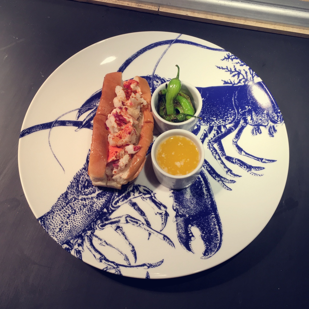 龙虾卷,黄油,辣椒。摆在龙虾的盘子上!chef门上贴着贴画:龙虾是一种生活方式