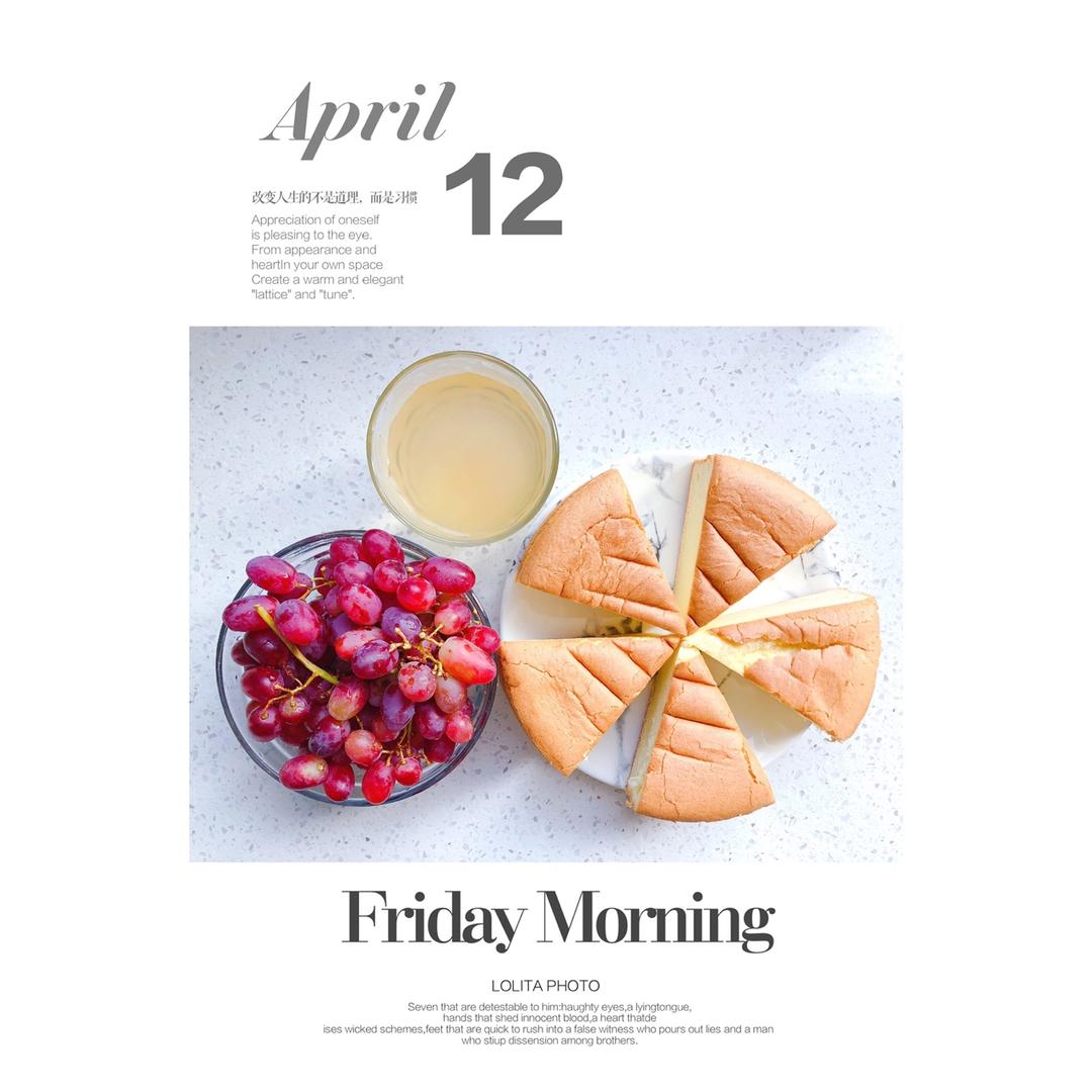 早餐:原味戚风+蜂蜜柚子茶+无籽红提