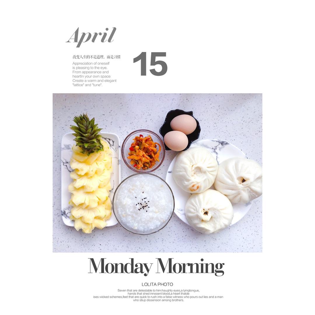 早餐:肉末粉丝包+水煮蛋+菠萝