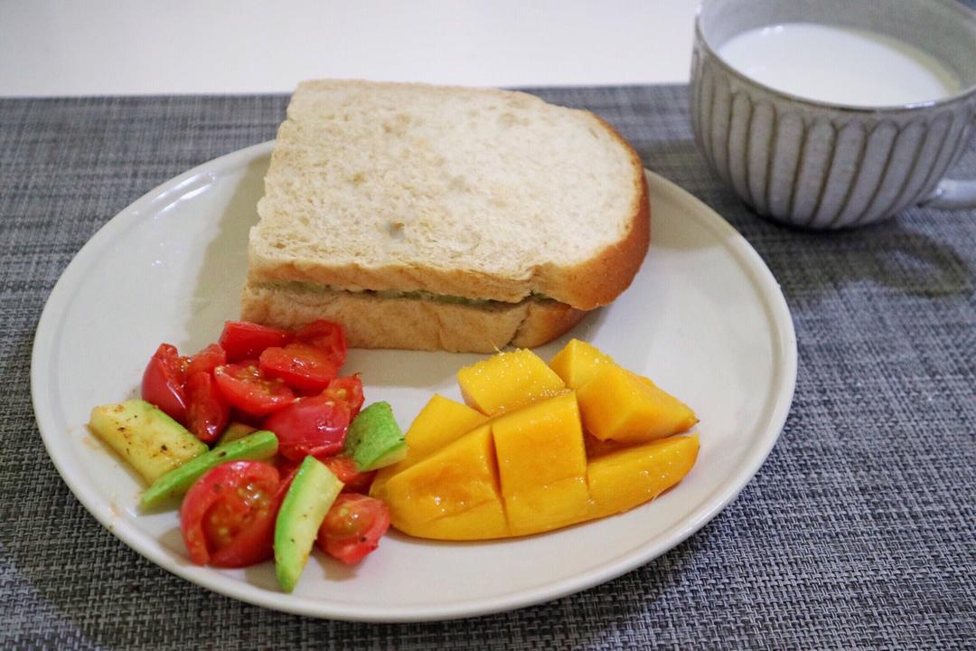 两片吐司,夹了黄瓜片,牛油果
