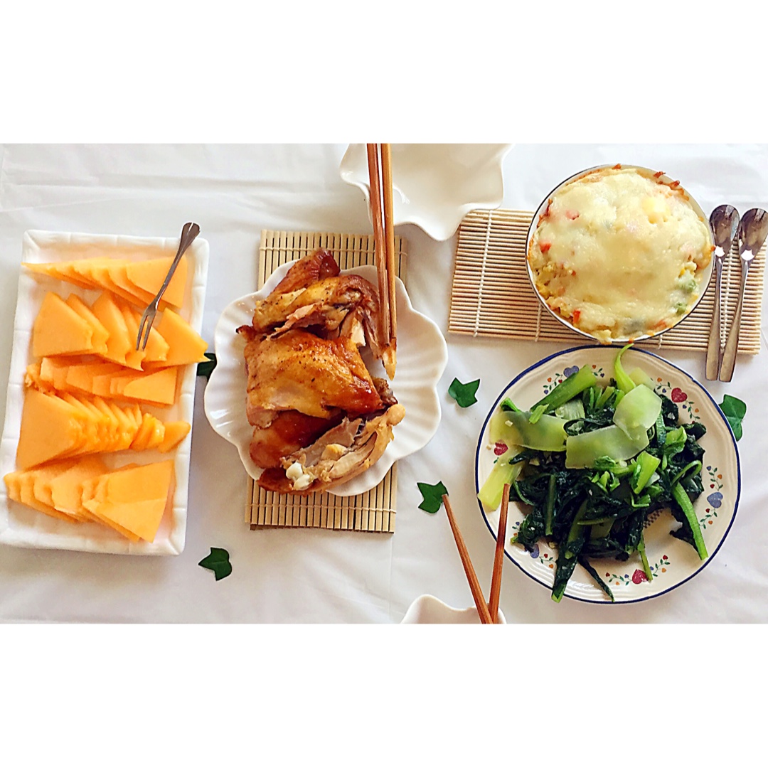 午餐 买了只烤鸡 我两刷刷刷久吃完了这盘鸡
