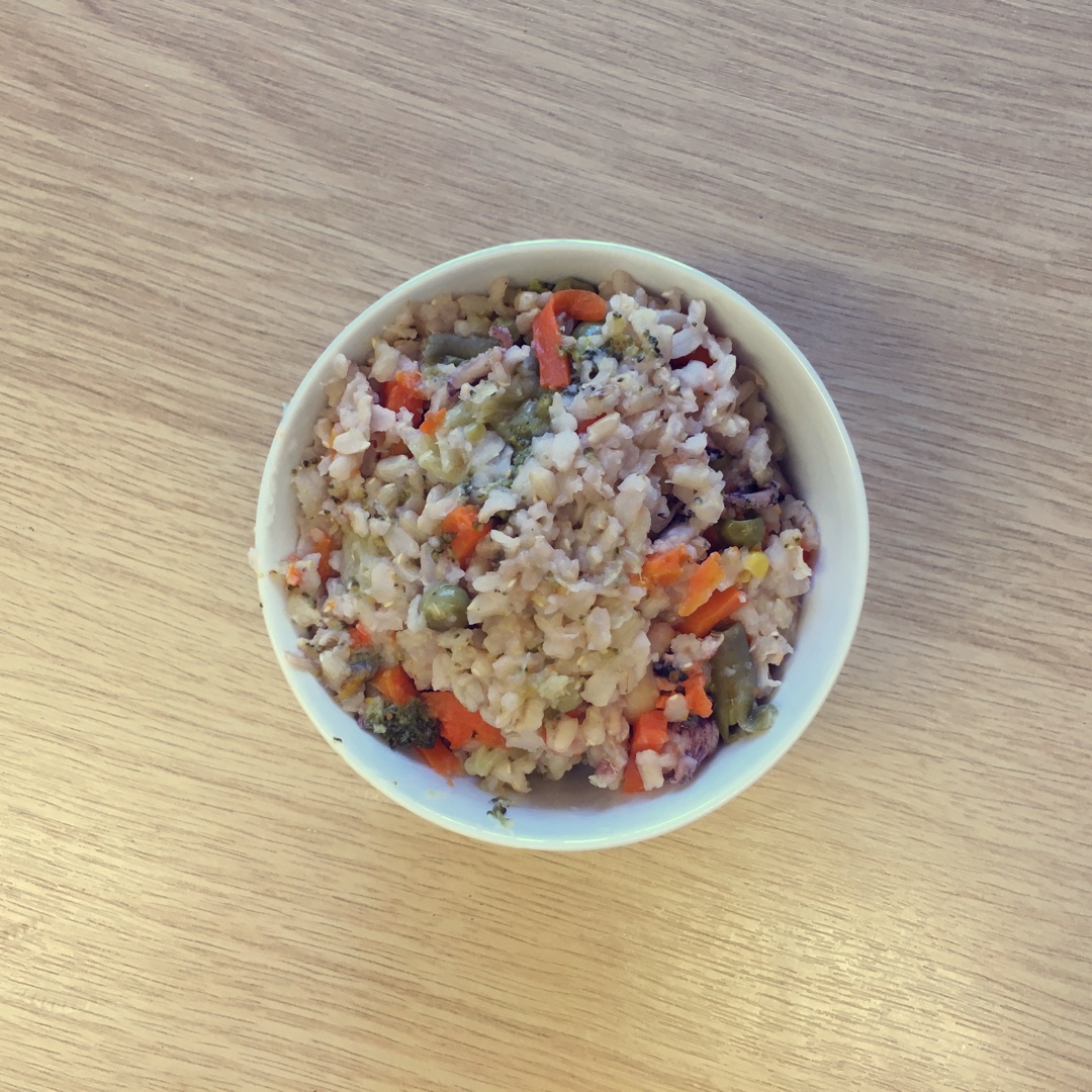 最后剩了一小块肉 蟹宝宝的强迫症硬是要吃完 也把青菜消灭完了