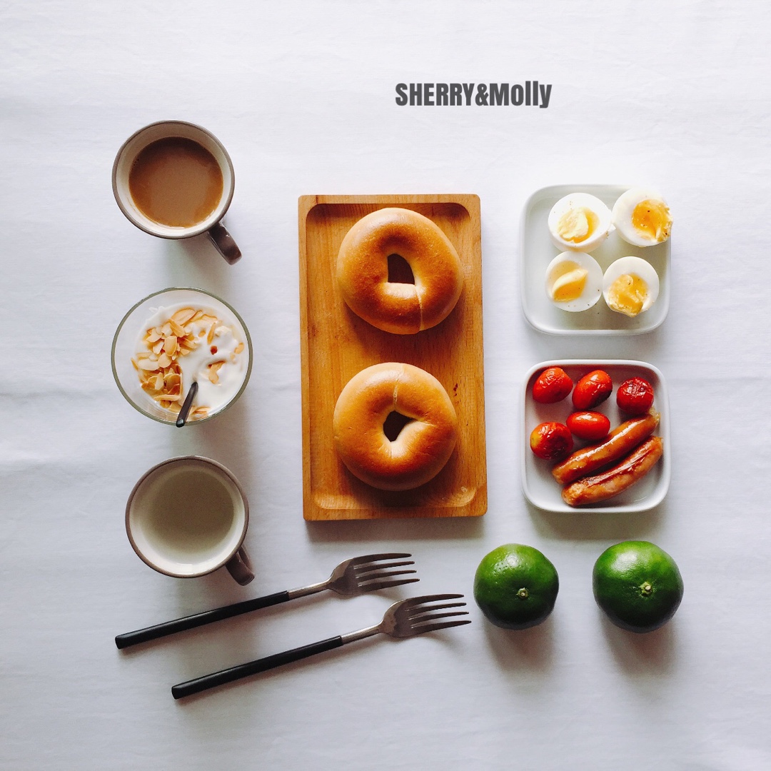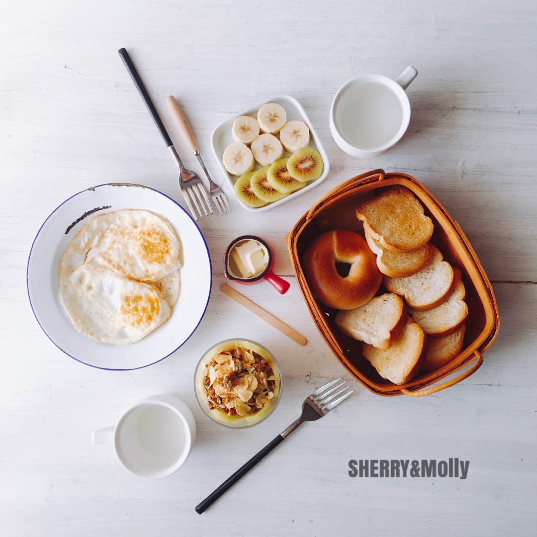 早啊~每天早上那段时间总是睡不好 大概是太想起床做早餐了😂今天是原味贝果/吐司/荷包蛋/水果谷物酸奶杯/奇异果&...