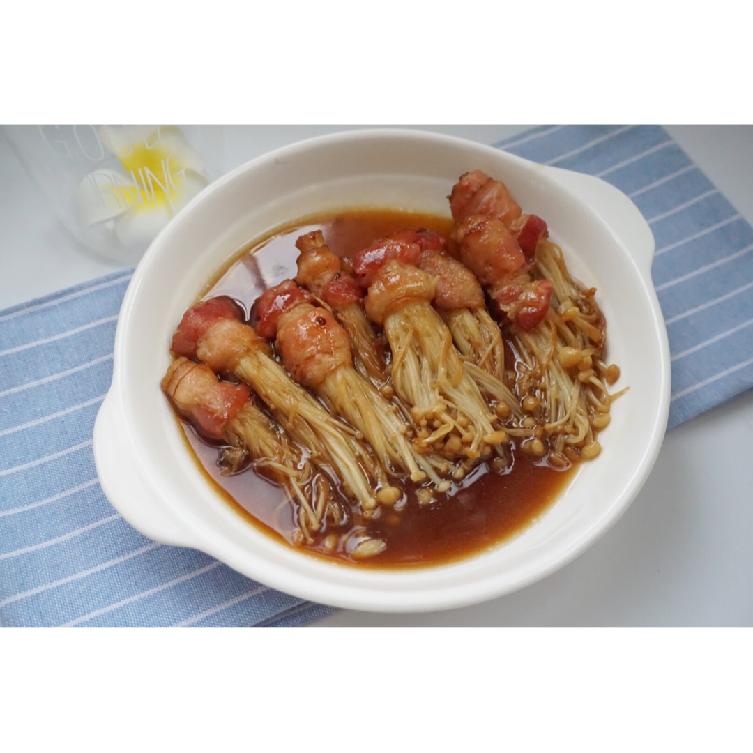 真的很好吃~ 不过用生铁锅煎的时候是关键~噢对了,培根比金针菇难熟,所以,我是用一条培根切成两半,一半包一束金针菇,反正...