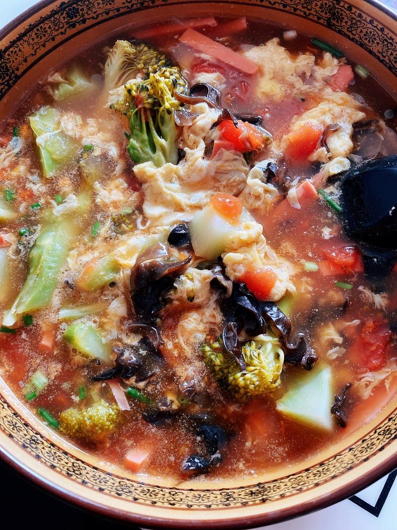不知道是什么的汤,有啥放啥,加醋加胡椒粉
