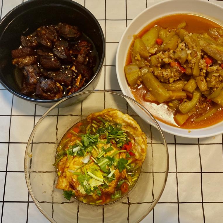 老公离开自己做的第一顿饭,没有肉加了个蛋