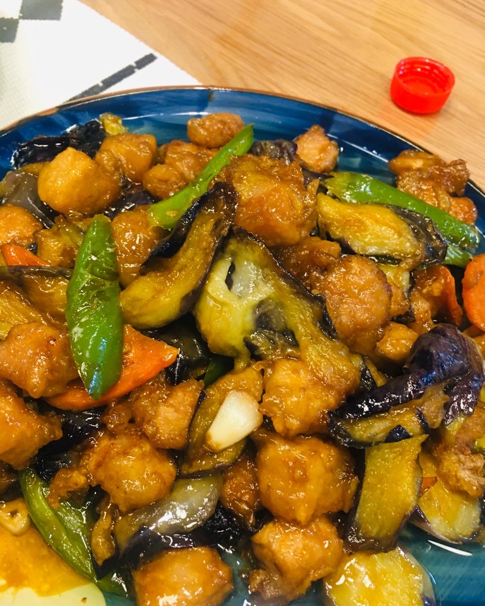 肉和茄子,我的最爱…第一次做,泡了一天水淀粉,结果泡少了,又加了好多淀粉🤪🤪