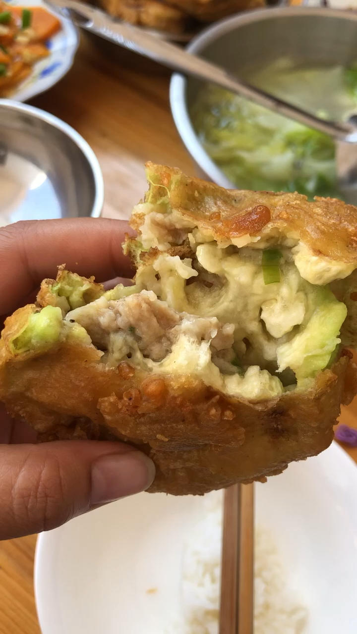 第一次尝试做好吃的肉馅茄饼😋