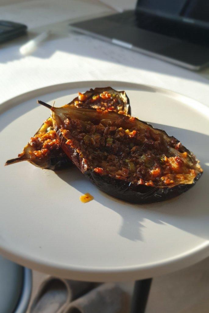 下午老妈炖鸡 顺手把鸡胸肉给我片下来了 就混着豆腐拔了茄子船的草 肉泥部分是真的好吃 味增和蜂蜜甜口配一脸 但是感觉整道...