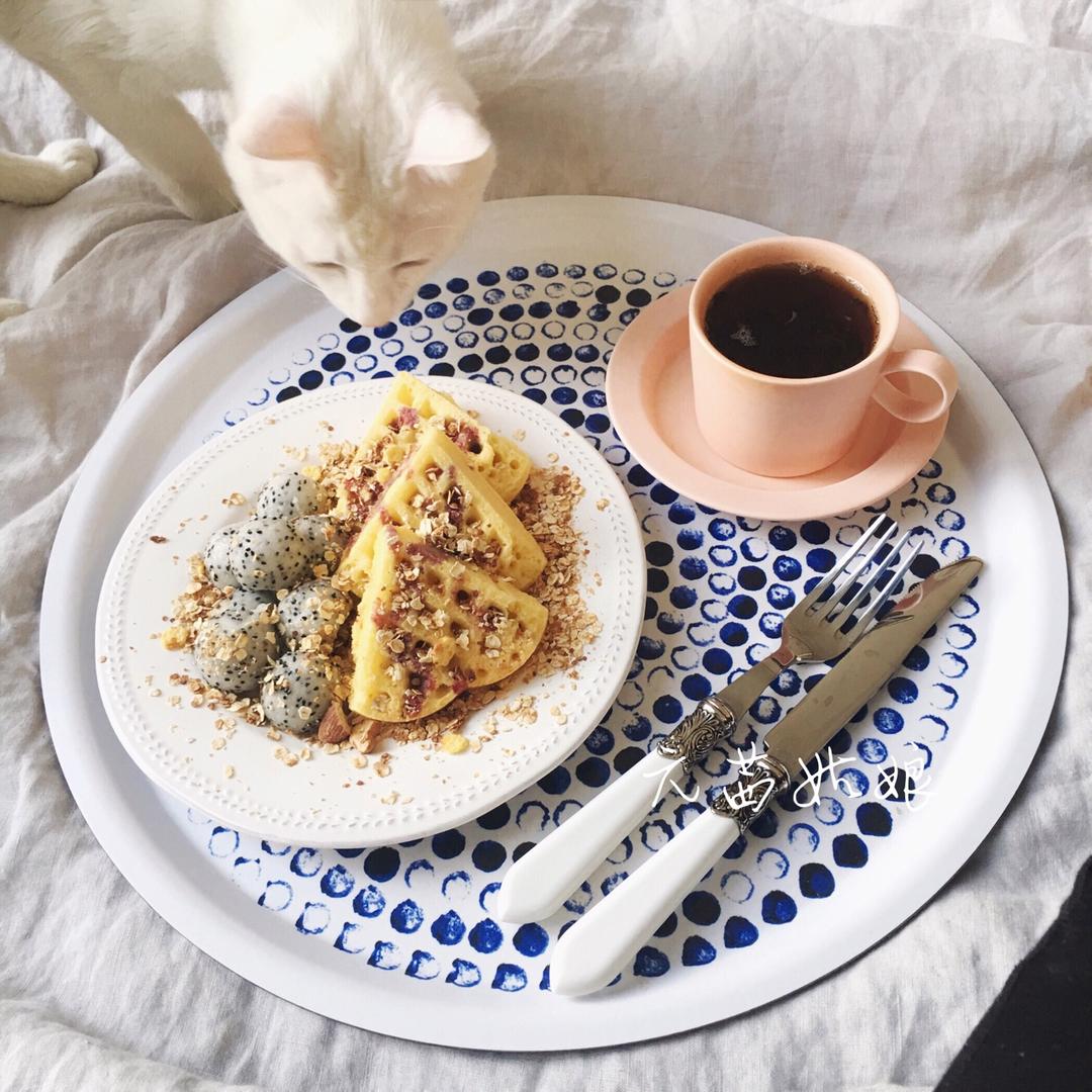 原味华夫+火龙果+烤燕麦+蓝莓果酱+百香果糖浆