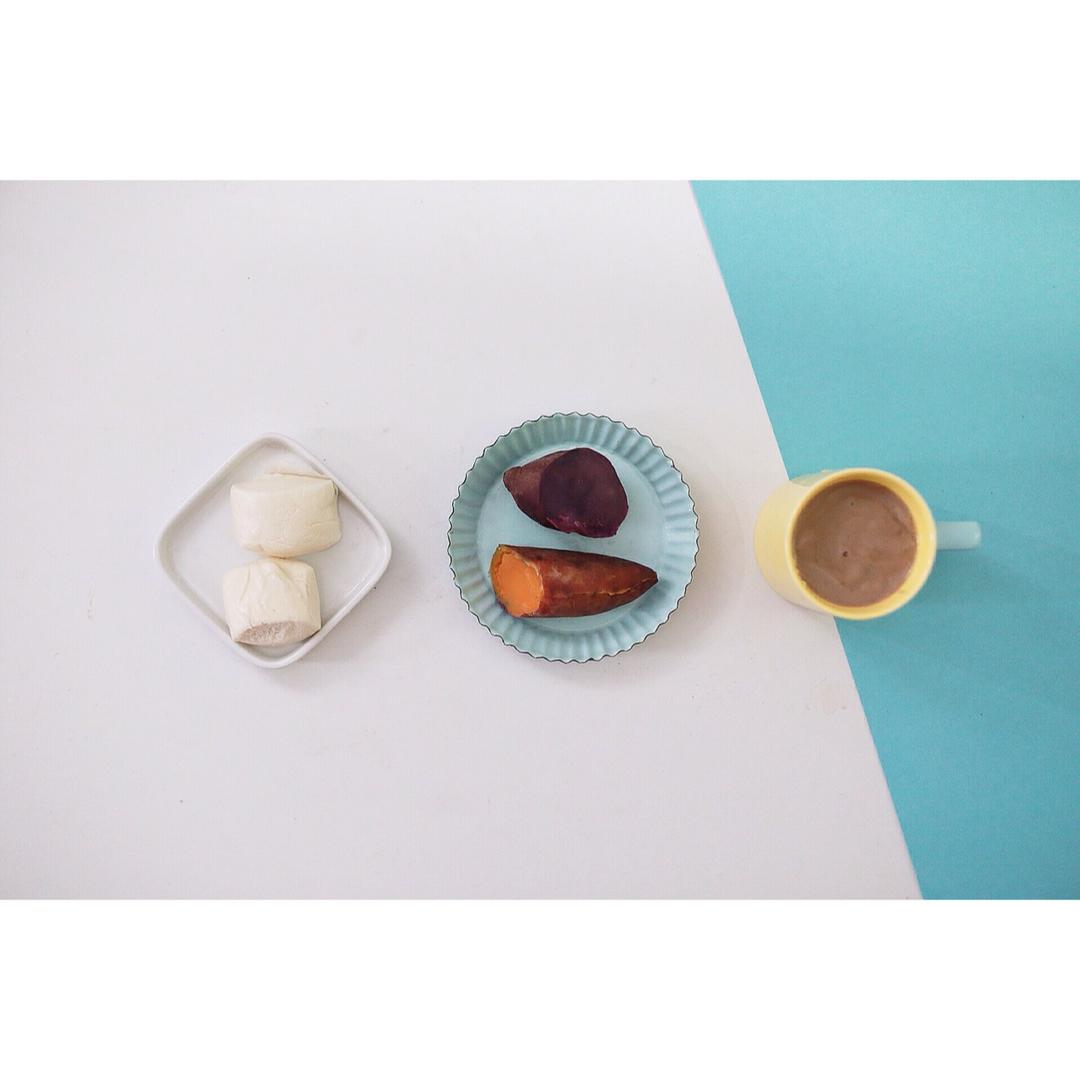 半个红薯➕半个紫薯➕两个小馒头➕红豆薏仁豆浆