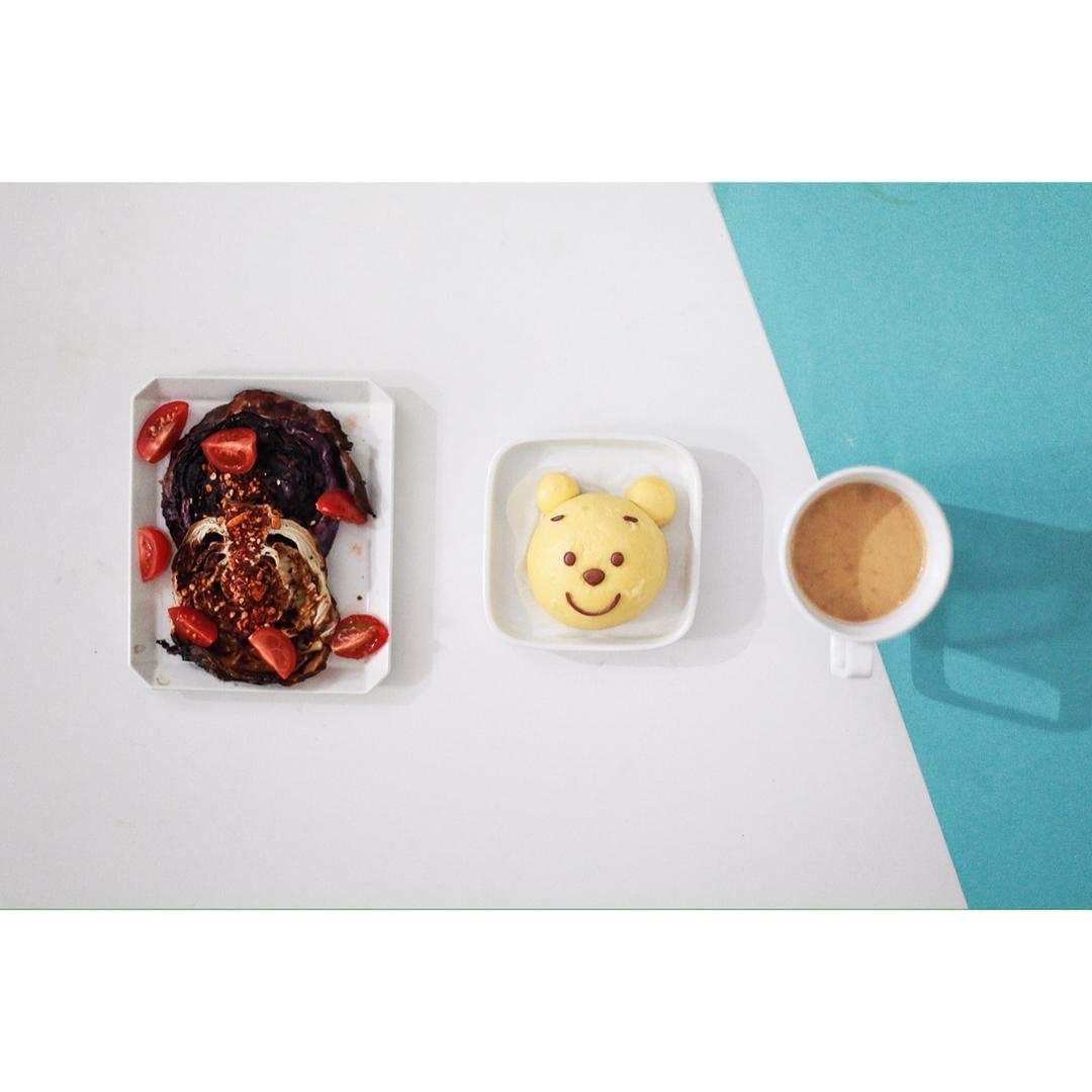 烤紫甘蓝包菜➕维尼小熊➕焦糖奶茶