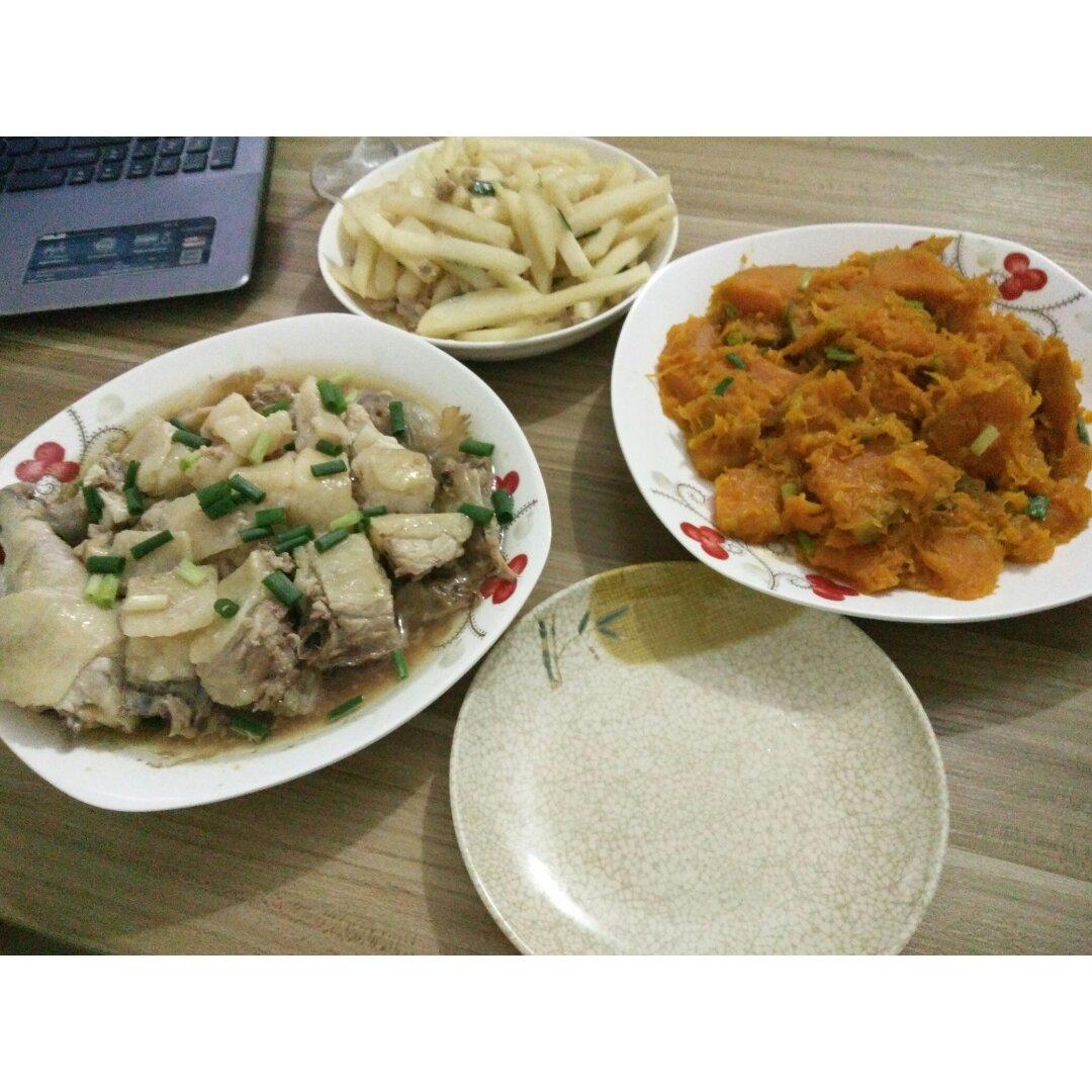 今天动妈烤了脆皮鸡腿(菜谱没有写先不发)、粉丝鲍鱼、蒜蓉罗马生菜、蚝油茶树菇,和动妈自己爱吃的拌辣椒圈。