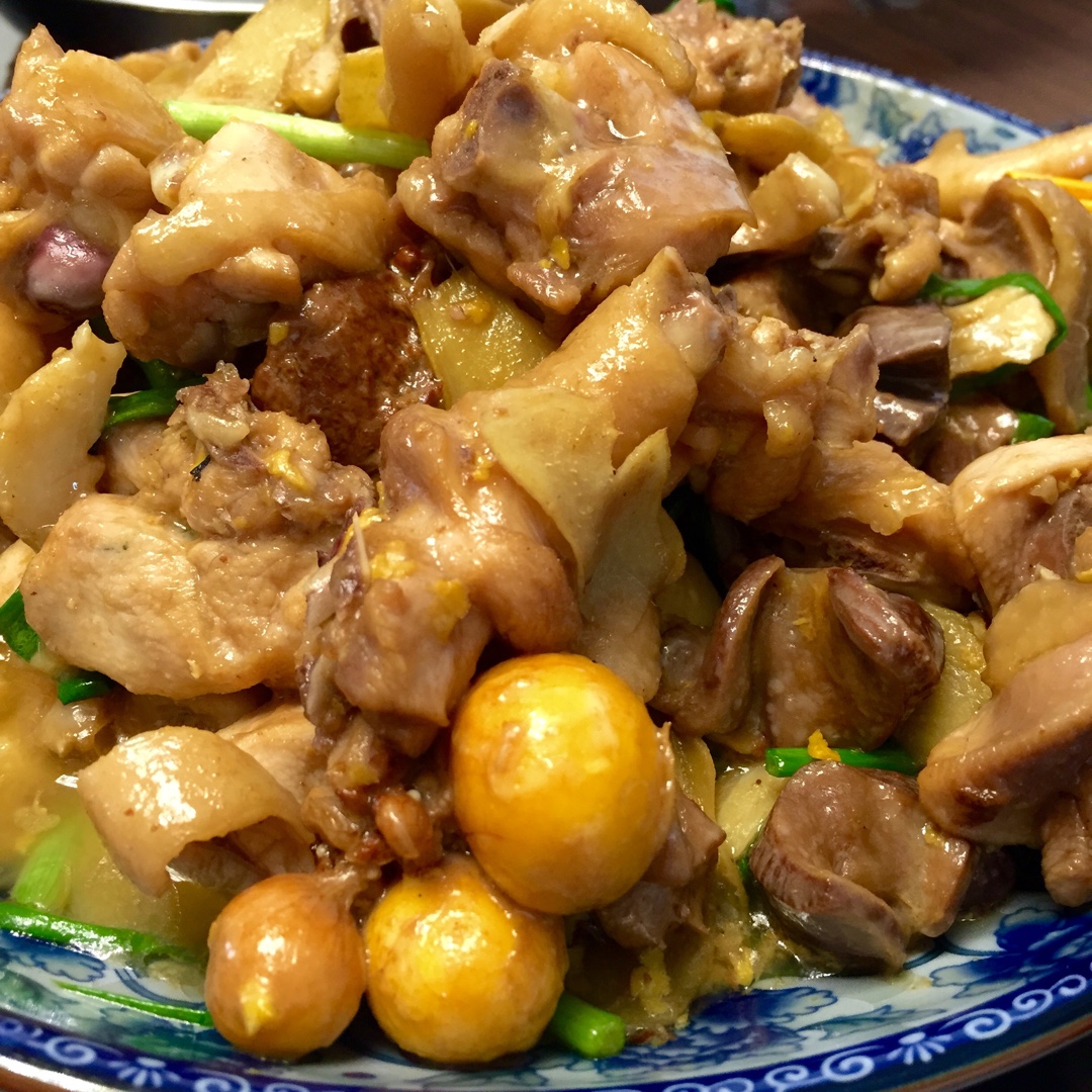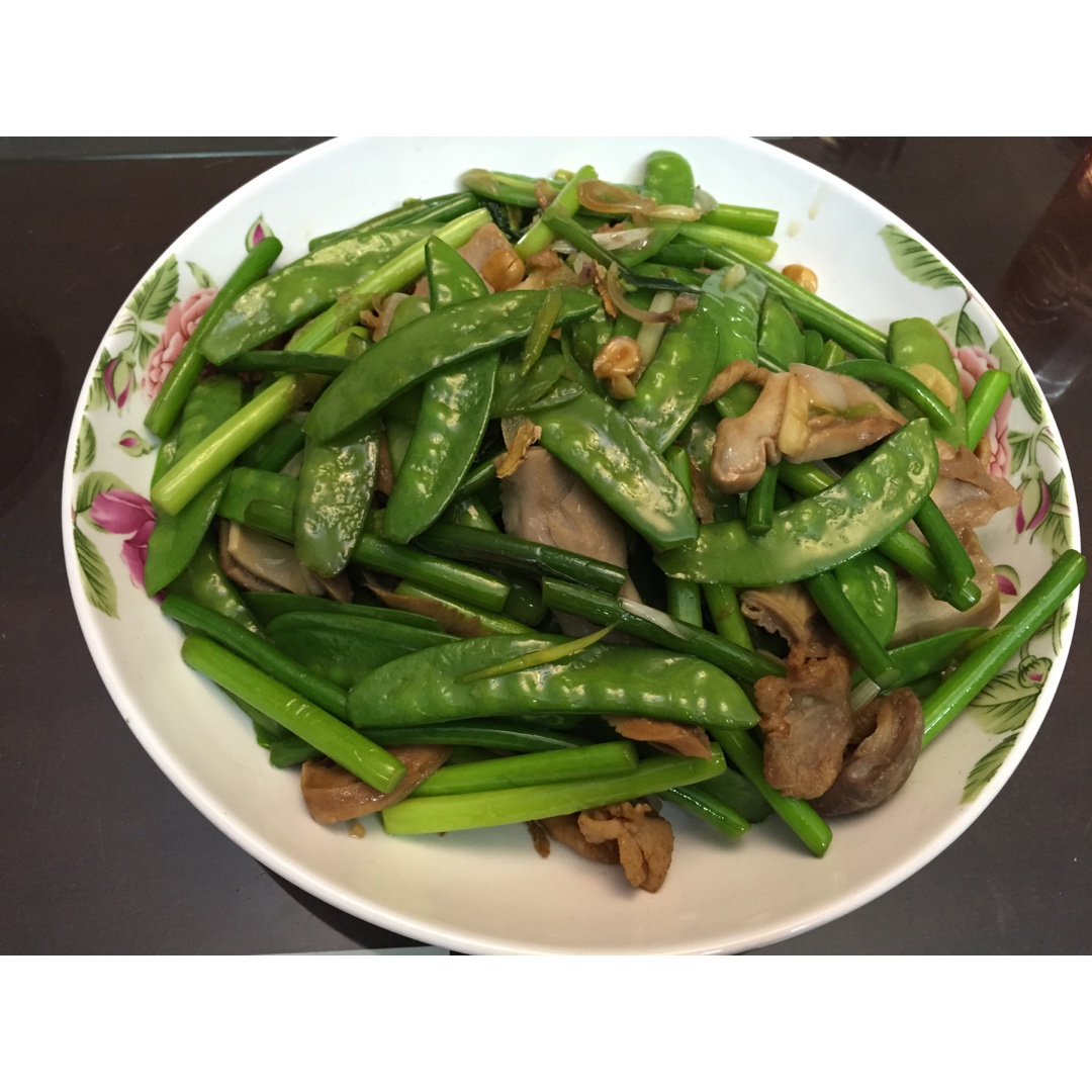 前几天在家吃饭, 依旧是我和我爸合作的出品. 蒜苔荷兰豆炒猪肚, 油炸鬼蒸蛋, 炒青菜和九层塔炒鸡. #晚餐•201...