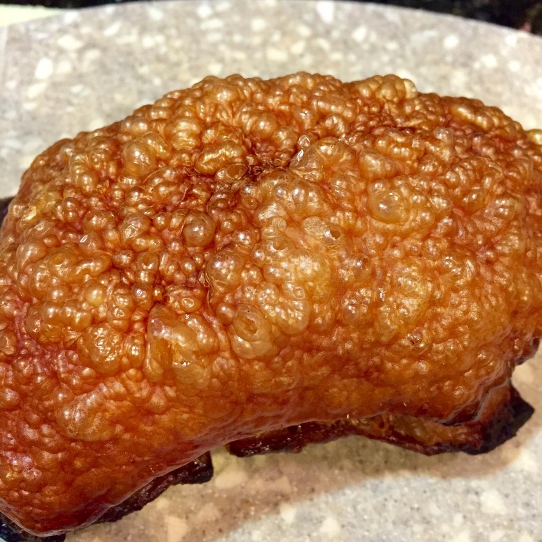 今天又做烧肉了, 皮不是一般的脆, 老公一边切一边偷吃.