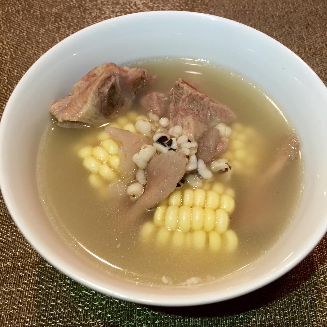 今天的晚餐,排骨玉米汤, 加了点淮山兹实薏米. 每人一大碗, 大家都要留着肚子吃蛋糕.