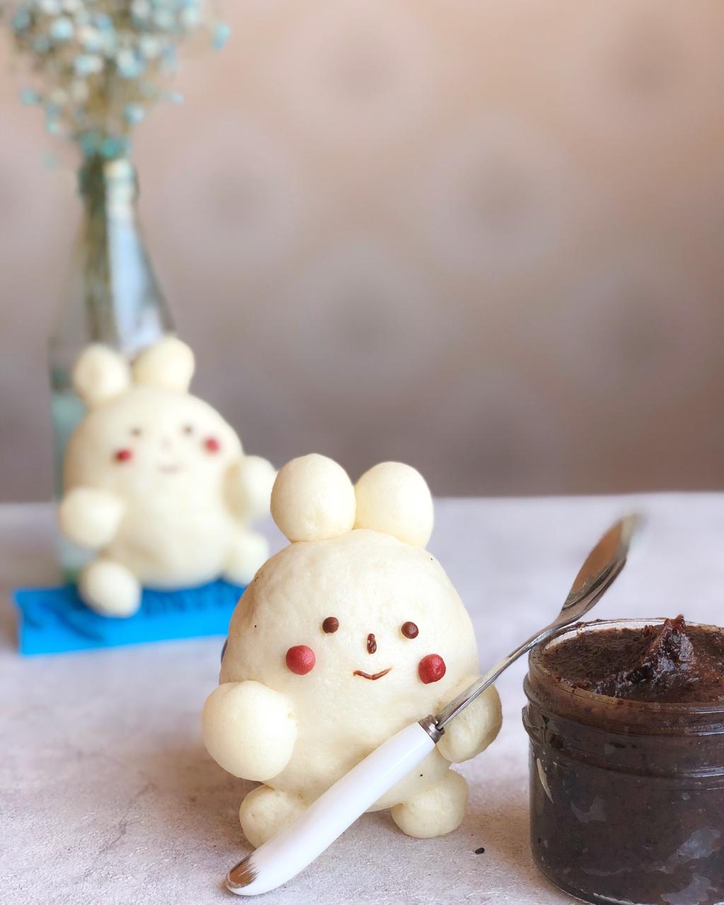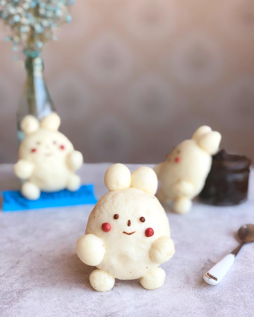 小兔🐰馒头,包着自己做的红枣泥,邱先生喜欢的红枣泥😊,期待邱先生看见小兔子的表情😁