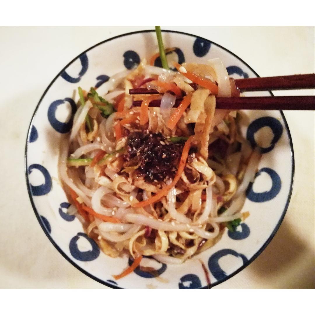 自制凉粉+自制辣油+蔬菜