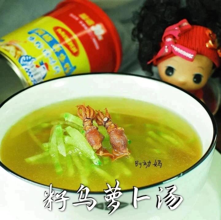 这种小乌贼干,以往动妈都是用来炖肉时调味用,这次学烧了这碗萝卜汤...