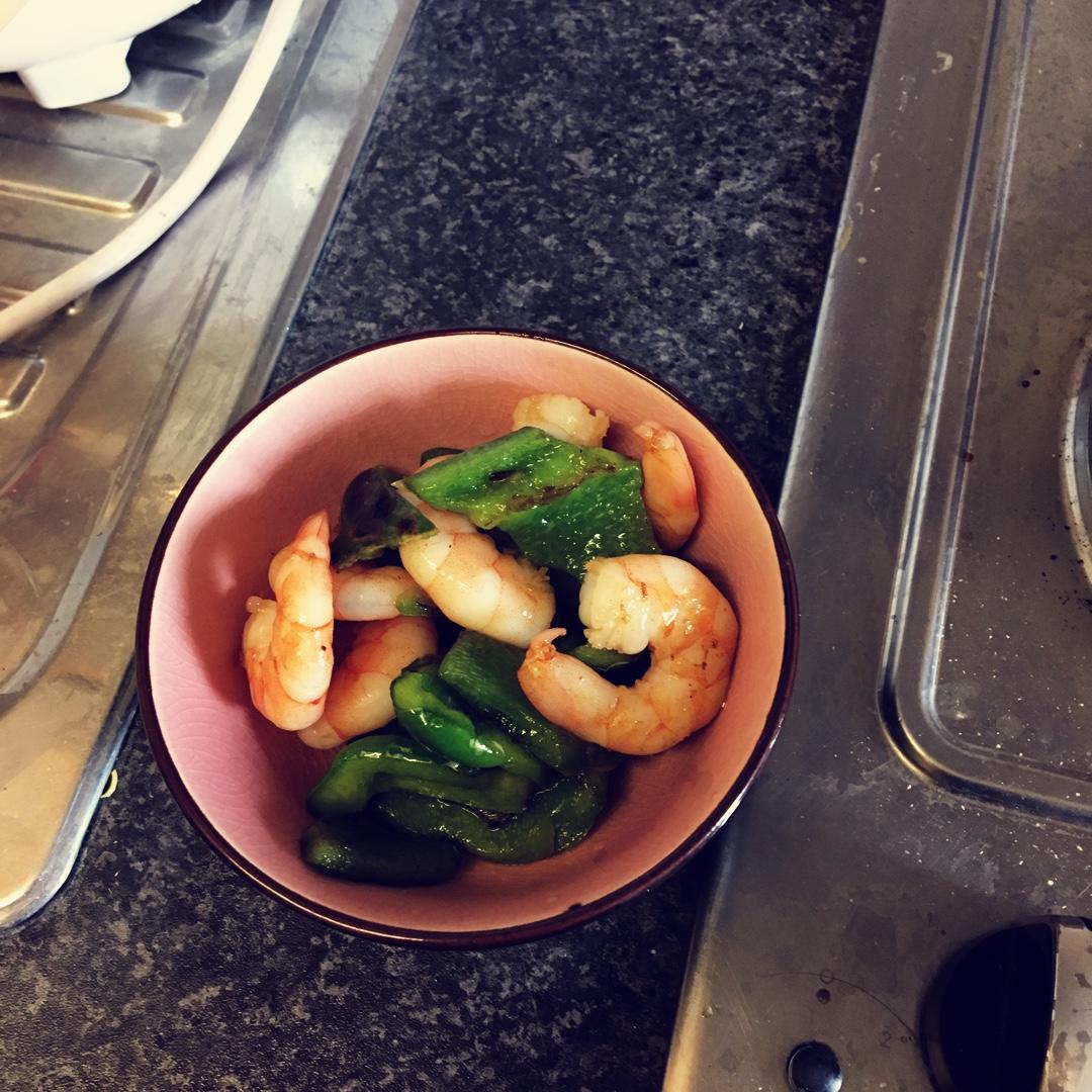 前一天番茄饭剩下的虾仁和青椒刚好炒一个菜