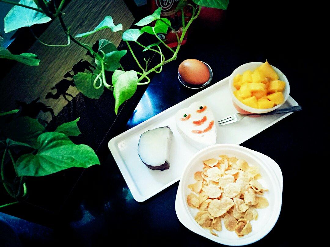 麦片牛奶,白薯,馒头片,芒果