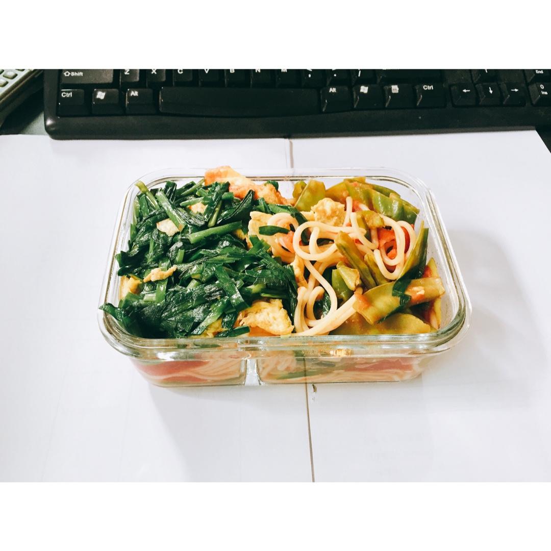 韭菜炒蛋➕西红柿➕荷兰豆➕意面