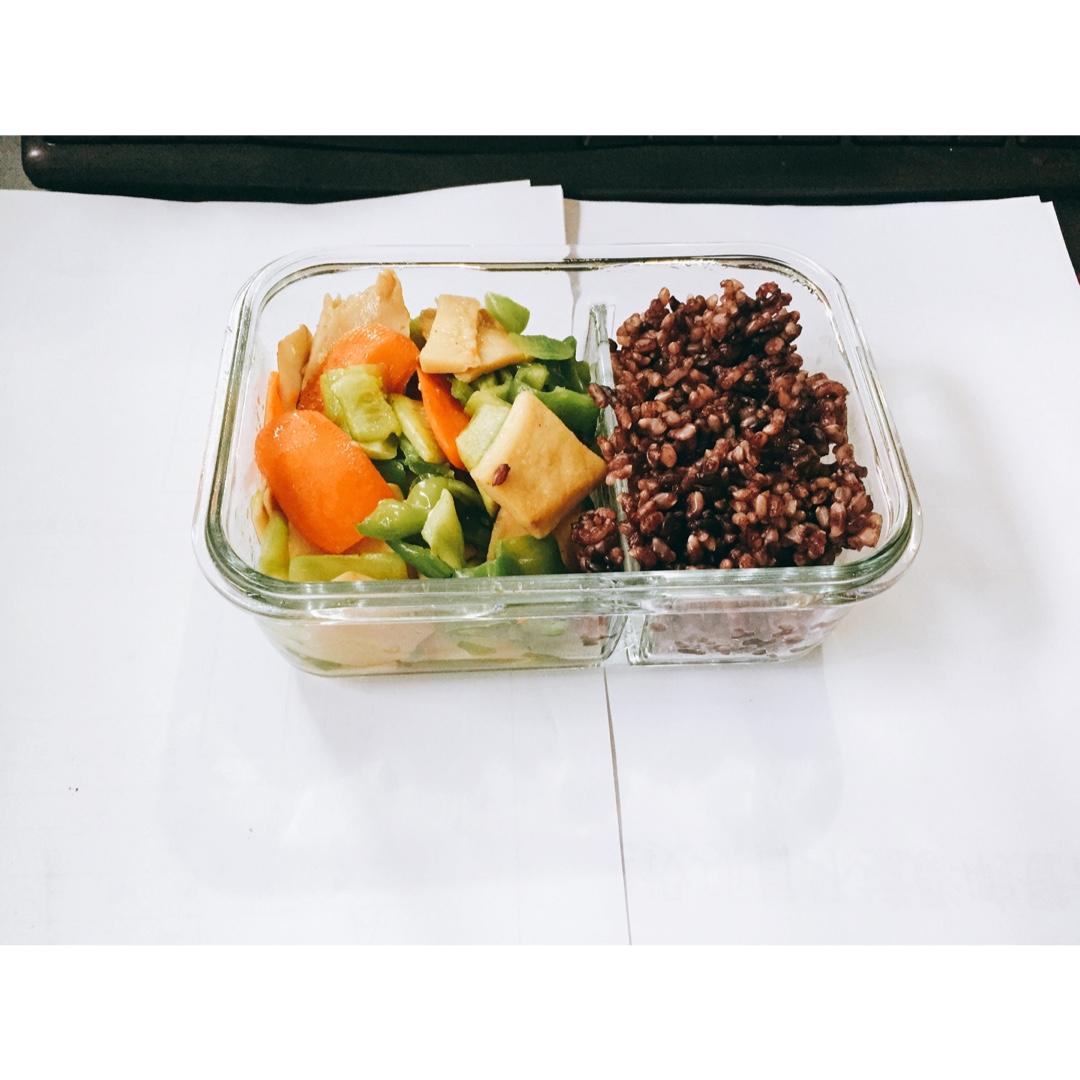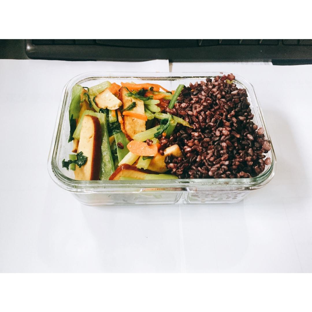 芹菜香干➕胡萝卜➕荷兰豆➕黑米糙米饭