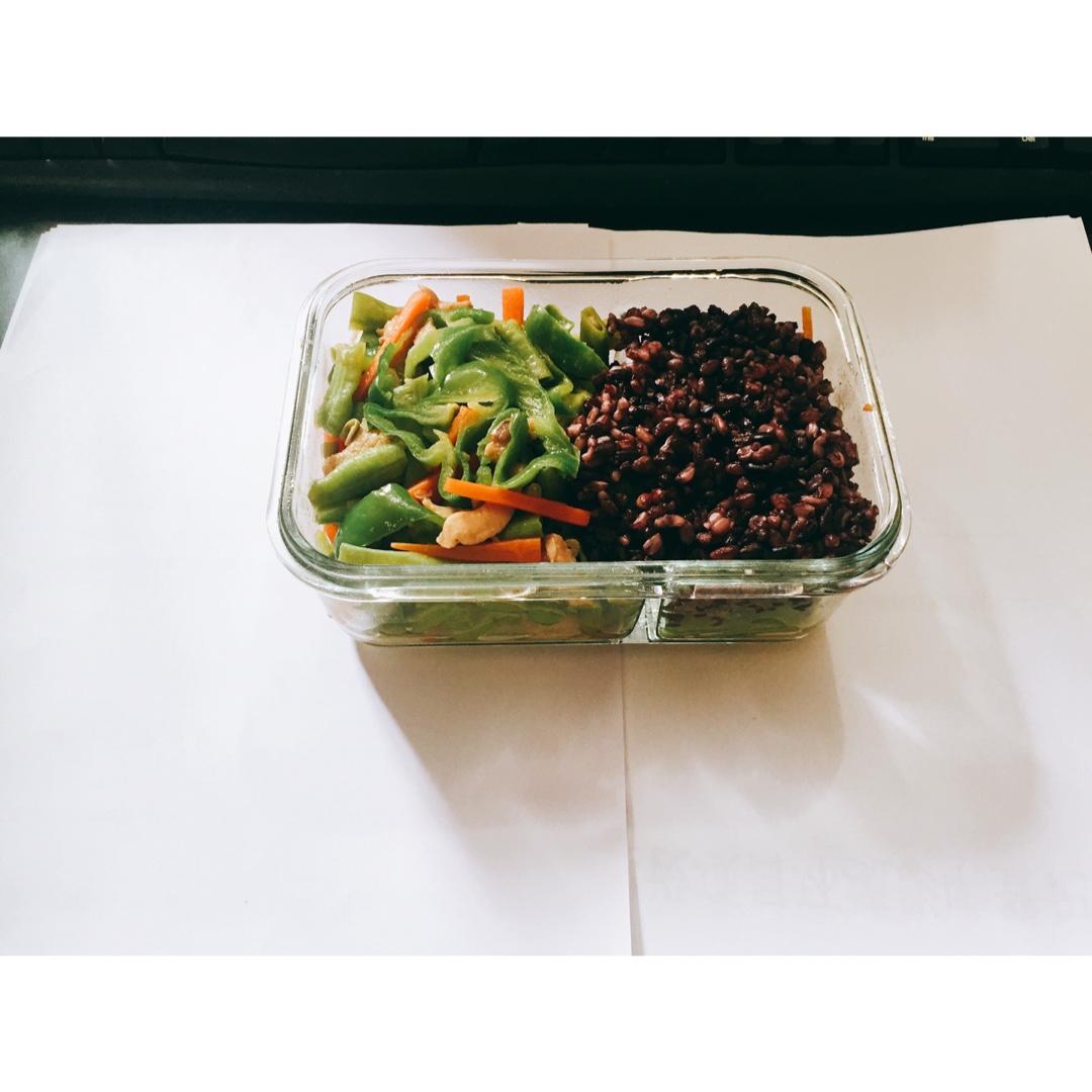 豇豆➕胡萝卜炒青椒➕杏鲍菇➕黑米糙米饭