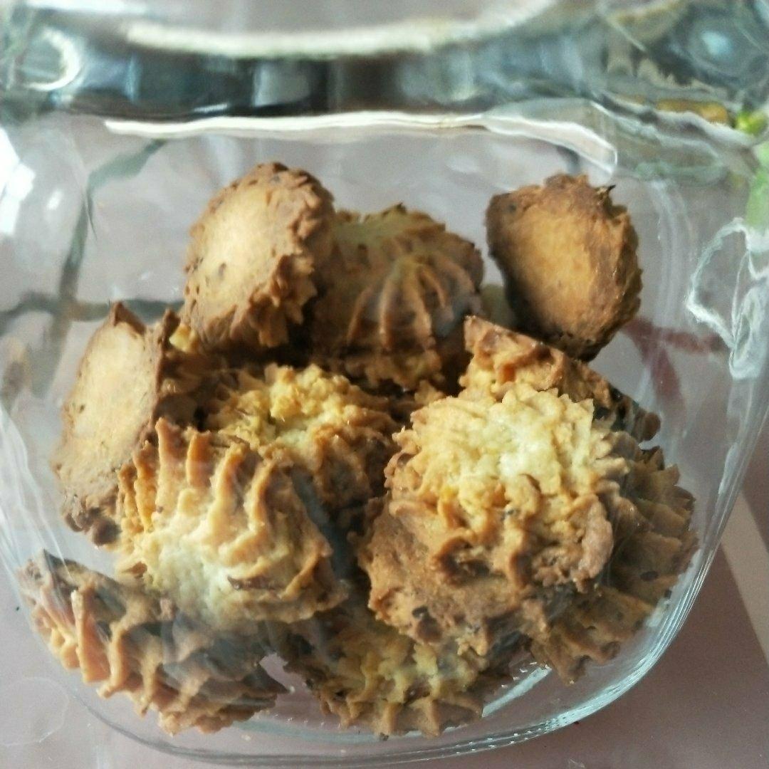 第一次尝试饼干,看来裱花袋还是选择硅胶比较靠谱,一次性的比较容易爆袋,虽然样子丑了点,但好在味道不错,那就将就吃吧!