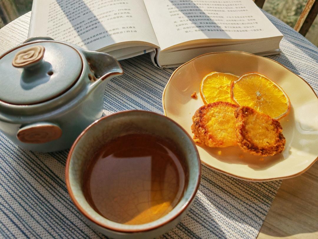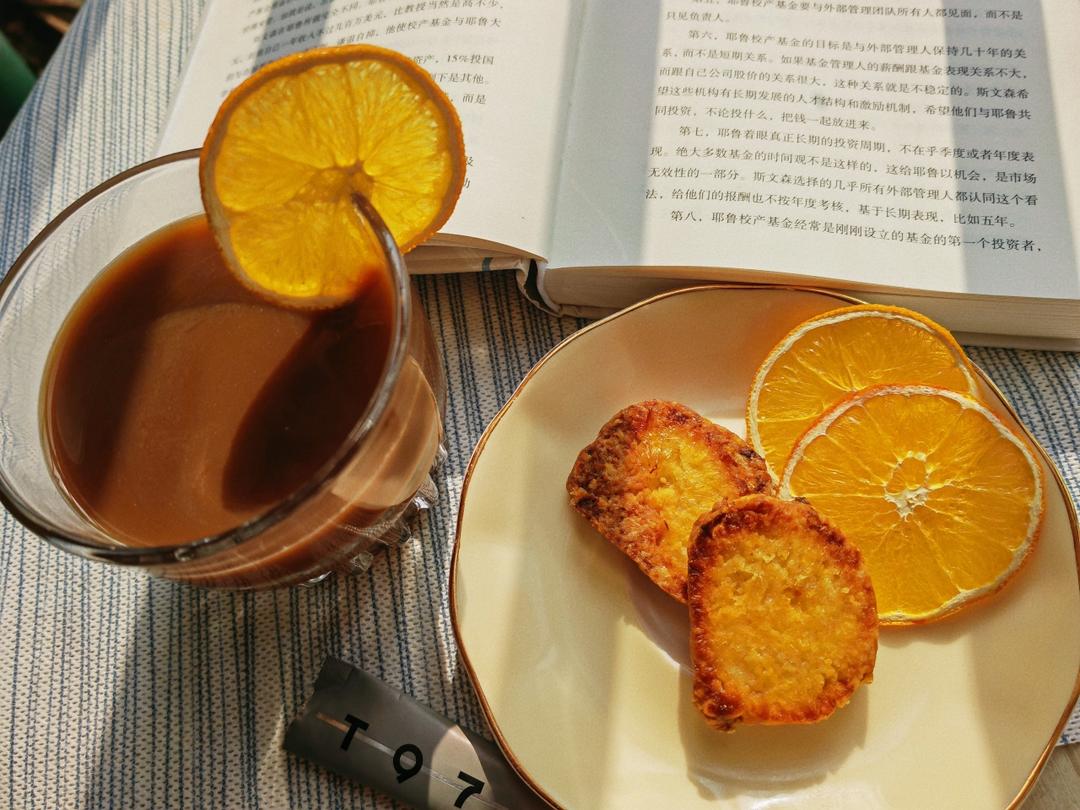 冬日阳光下午茶,一本书,咖啡&柑橘片,无蔗糖橙子饼干,期待早日解封…