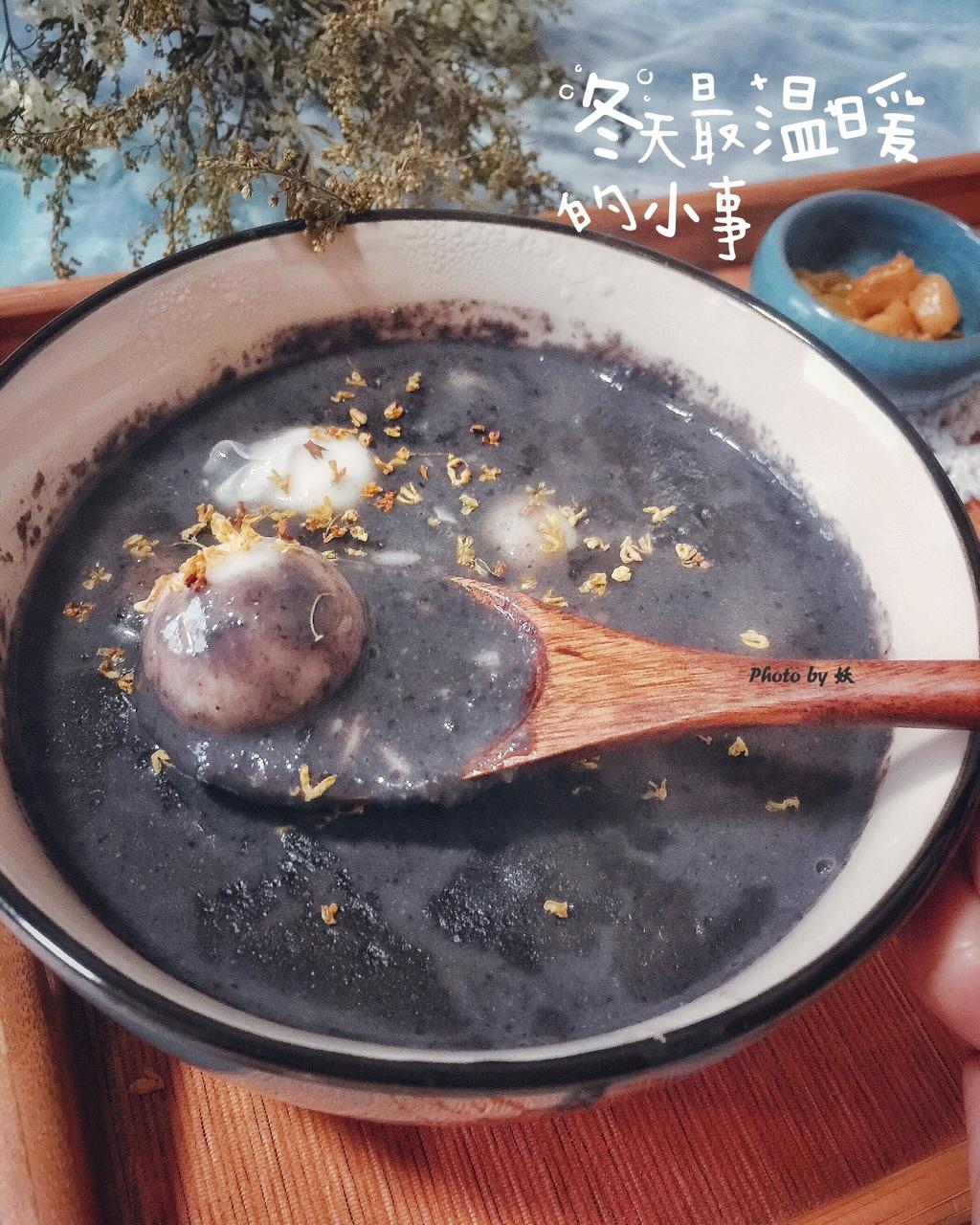 冬天里早上来一碗热腾腾带着一丝丝甜の生磨黑芝麻圆子。