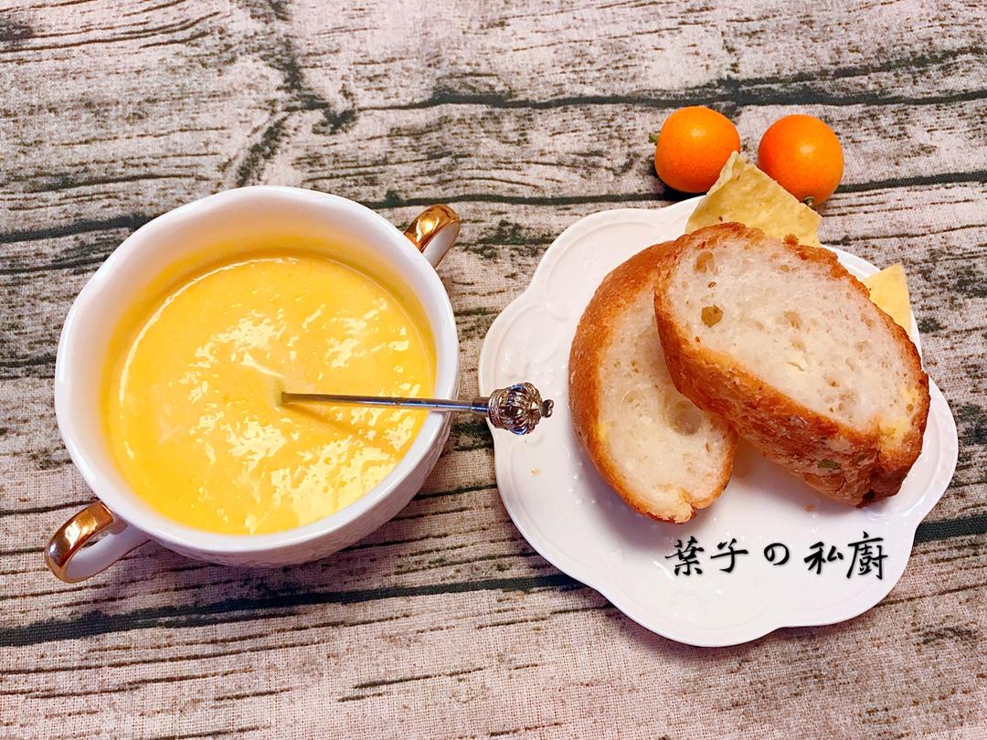 奶油南瓜汤配蒜香法棍,蘸着吃超美味\(≧▽≦)/