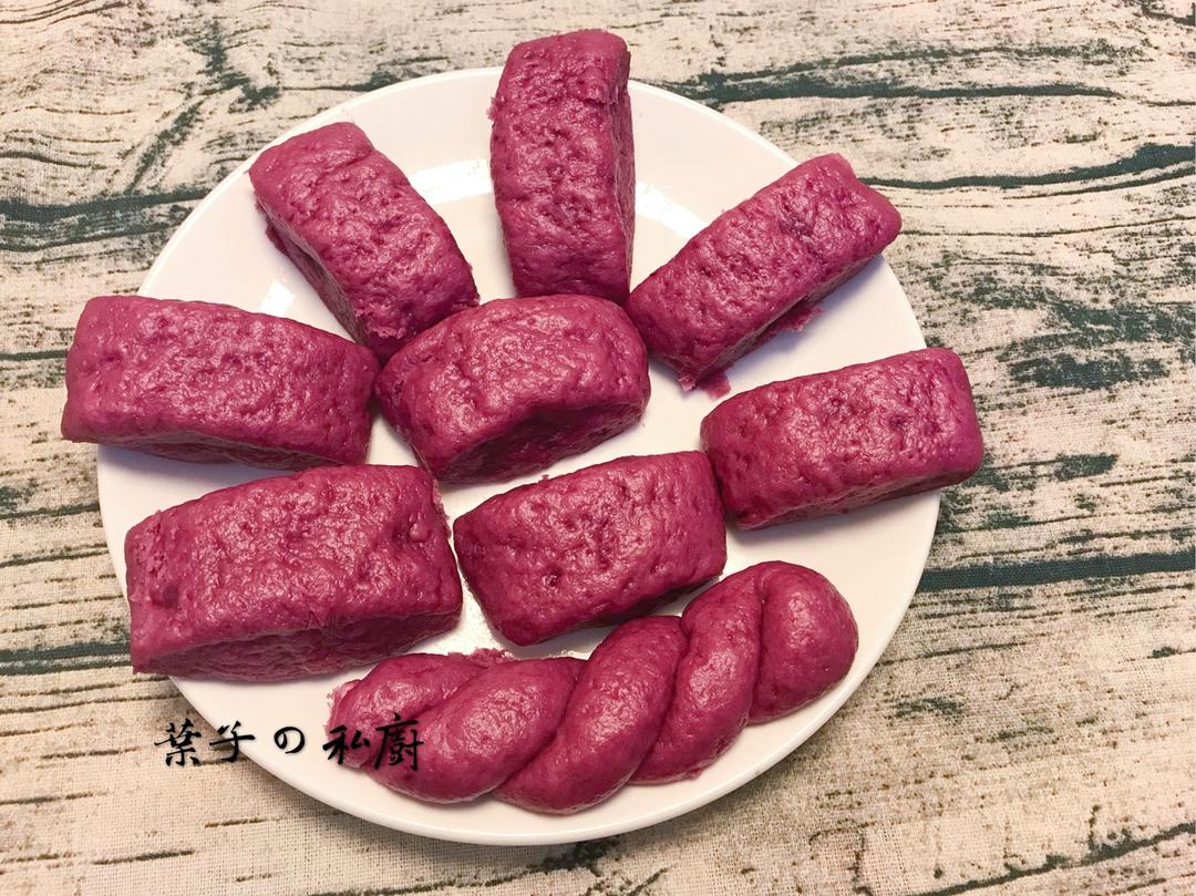 这个点做了一盘紫薯刀切,独立完成的馒头,总觉得有点怪怪的🤨