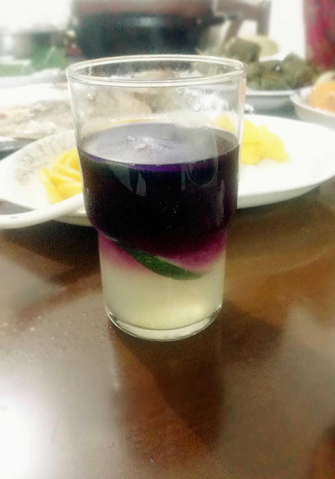 没买到红糖水,只能用蝶豆花泡成蓝宝石了…