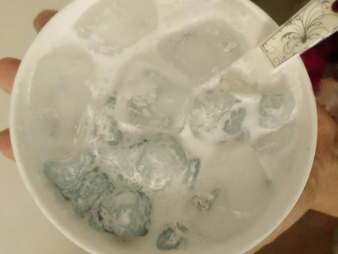 蝶豆花茶泡浓了,色变不够明现,冰没准备够多…然后就是糖放少了,酸,不过是挺解腻的。